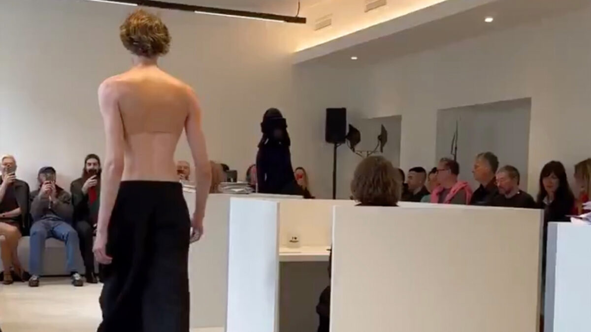 Origineel: Nederlandse designer geeft mannenmodel kolossale kwarktassen tijdens Paris Fashion Week