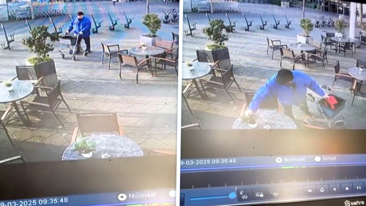 Bejaarde crimineel in Zoetermeer dankzij CCTV keihard betrapt terwijl 'ie een terrasplantje jat