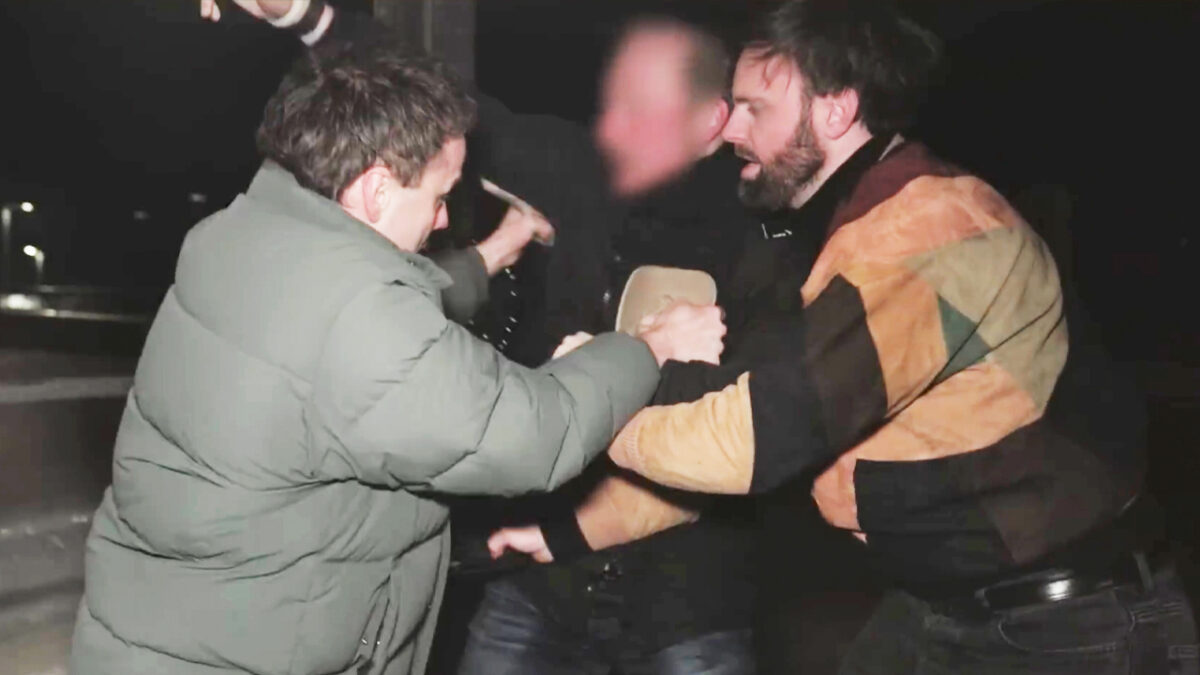 Na wat speurwerk wist het team Izijk op te sporen, maar in plaats van een pittig interview werd het een potje 'wie slaat de cameraman als eerste knock-out?'. Nog voordat er een fatsoenlijk woord gewisseld kon worden, trok hij een masker over zijn hoofd en escaleerde de situatie compleet uit de klauwen.