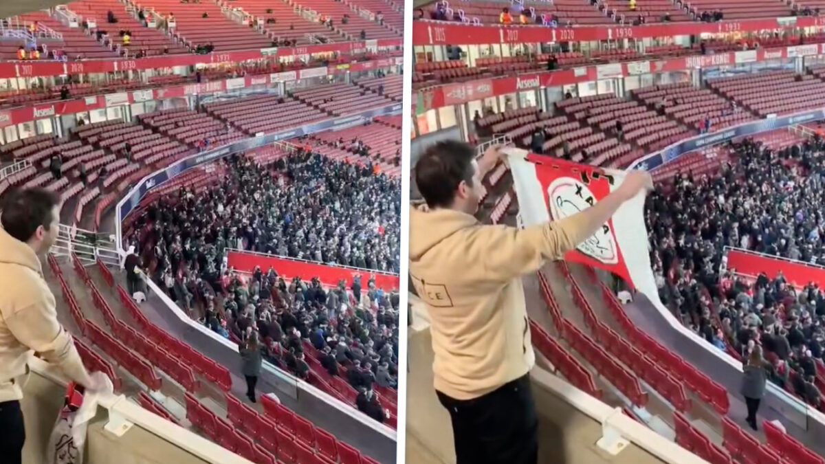 Gisteravond speelde PSV met 2-2 gelijk in de uitwedstrijd tegen Arsenal, maar aangezien ze thuis al met 1-7 waren vernederd - wat overigens een recordnederlaag is - was deze westrijd slechts een formaliteit. In Londen was er één supporter die nog iets meer zout in de Eindhovense wonden strooide door het uitvak met een Ajax-vlag te provoceren.