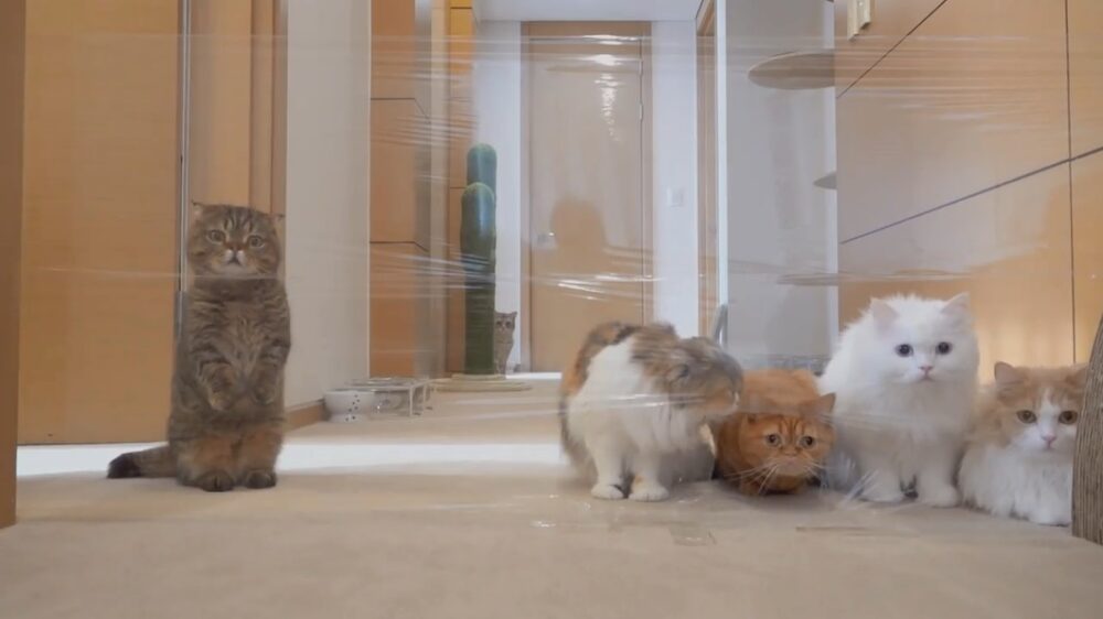 Schattige poesjes moeten hun weg zien te vinden in een onzichtbaar doolhof