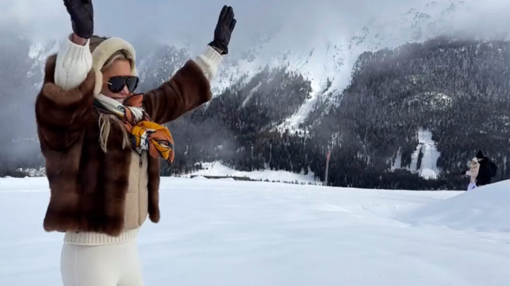 Sylvie Meis geniet met volle teugen van haar wintersport in het superchique St. Moritz