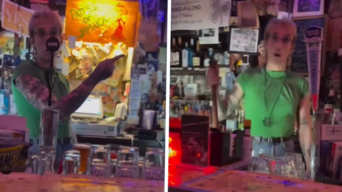 Een andere vrouw in de bar liet er geen misverstand over bestaan: de Trump-supporter was daar niet welkom. Toen de dame met de pet suggereerde dat het om pure discriminatie ging, kon ze rekenen op een lacherige respons van andere aanwezigen.