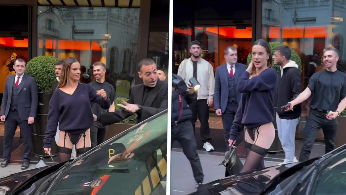 Alessandra Ambrosio was haar broek vergeten tijdens de Balenciaga Paris Fashion Week Celebs