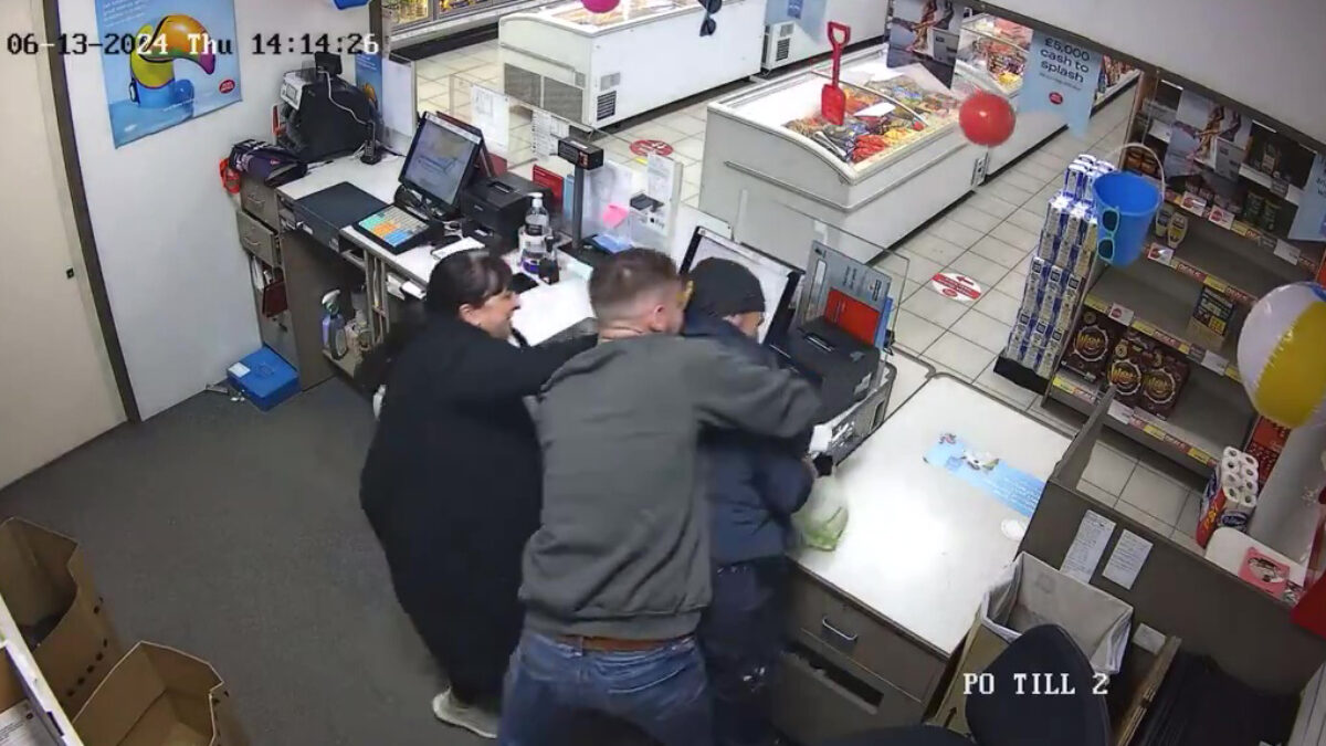 Een paar Schotse helden in Dunfermline lieten zich niet kennen toen een gewapende overvaller dacht makkelijk binnen te lopen bij een winkel. Klanten en medewerkers lieten zich niet intimideren en werkten hem zonder pardon, en na een paar tikken, tegen de grond. Beveiligingsbeelden laten zien hoe hij spartelt, maar geen schijn van kans maakt. Politie kwam ‘m netjes ophalen, terwijl de helden waarschijnlijk nog een pint pakten op hun geslaagde ingreep.