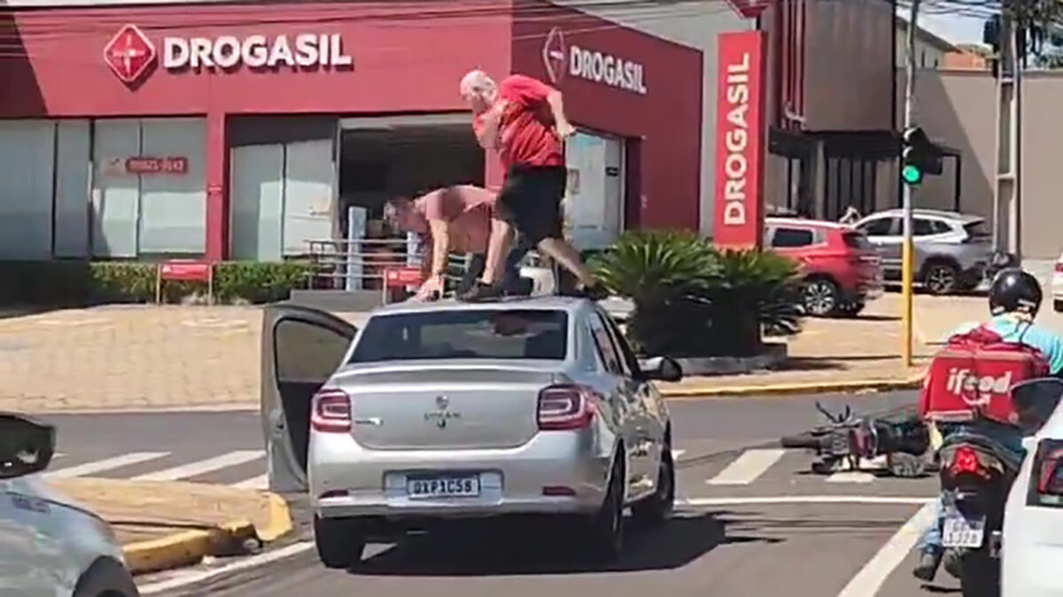 In Presidente Prudente, Brazilië, ging het even helemaal los op een kruispunt. Een 59-jarige automobilist en een 45-jarige motorrijder kregen mot en besloten dat woorden niet genoeg waren; het moest met vuisten opgelost worden. De twee heethoofden waren zo opgefokt dat ze elkaar niet alleen een paar flinke klappen gaven, maar zelfs bovenop de auto klauterden om hun ruzie uit te vechten.