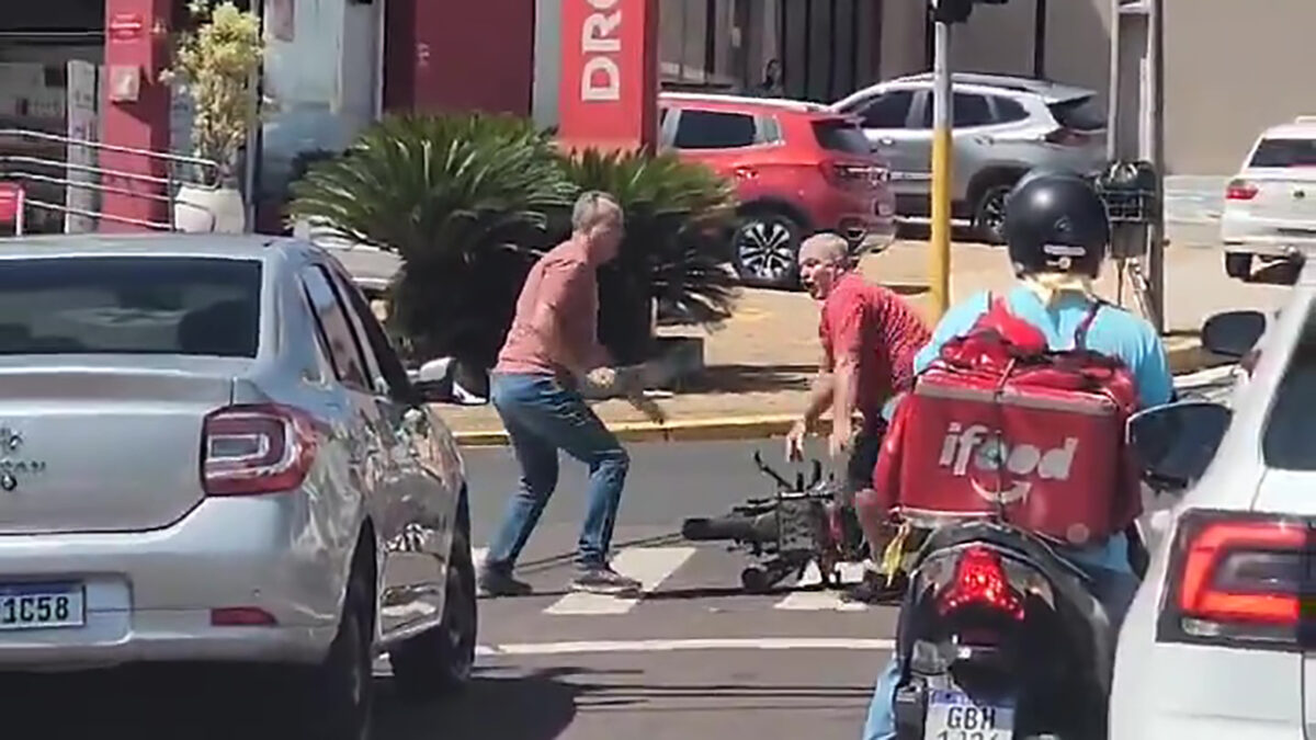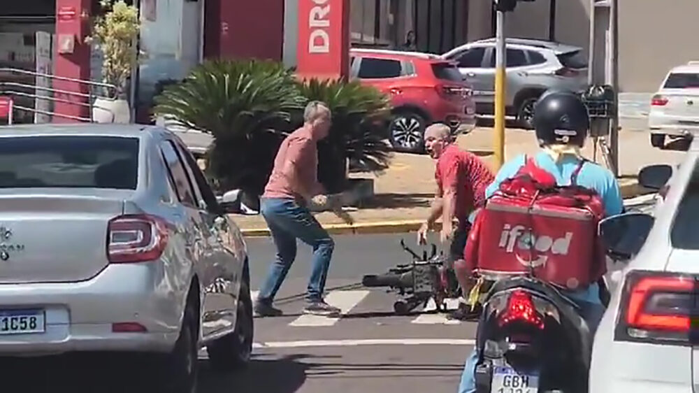 In Presidente Prudente, Brazilië, ging het even helemaal los op een kruispunt. Een 59-jarige automobilist en een 45-jarige motorrijder kregen mot en besloten dat woorden niet genoeg waren; het moest met vuisten opgelost worden. De twee heethoofden waren zo opgefokt dat ze elkaar niet alleen een paar flinke klappen gaven, maar zelfs bovenop de auto klauterden om hun ruzie uit te vechten.
