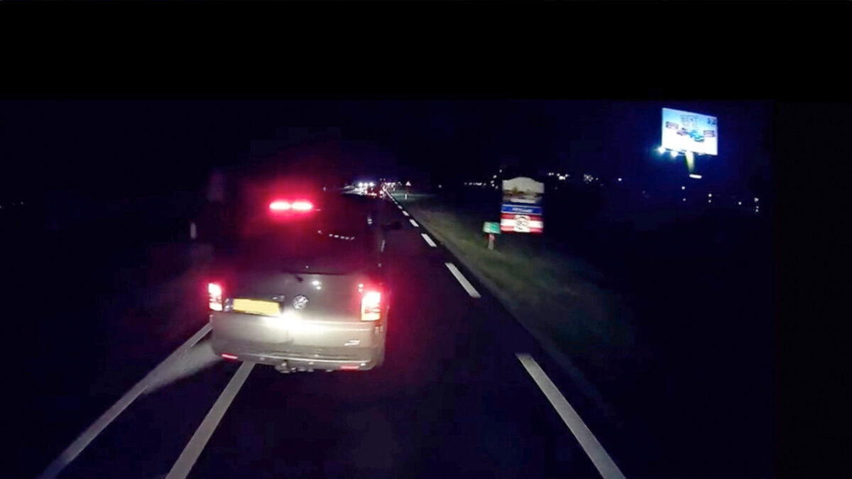 In een verse dashcam-video zien we weer zo’n verkeersheld die denkt dat z’n Volkswagen Transporter een tank is. Meneer haalt op het allerlaatste moment een vrachtwagen in via het verdrijvingsvlak en besluit daarna de trucker even op z’n plek te zetten met een ordinaire brake check.