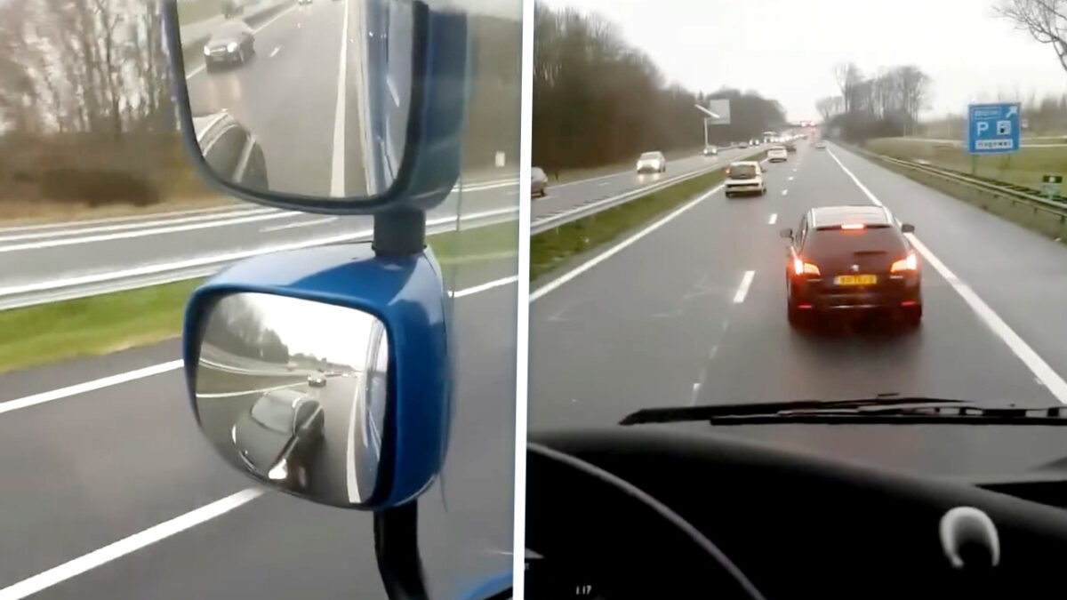 Sommige mensen horen gewoon niet op de weg, punt. Neem deze verkeerstokkie, vermoedelijk uit de oude doos, die blijkbaar z’n levensdoel heeft gemaakt van vrachtwagens dwarsbomen. In plaats van een beetje normaal invoeggedrag te vertonen, gooit hij z’n auto vol in de ankers om een vrachtwagenchauffeurtje te pesten.