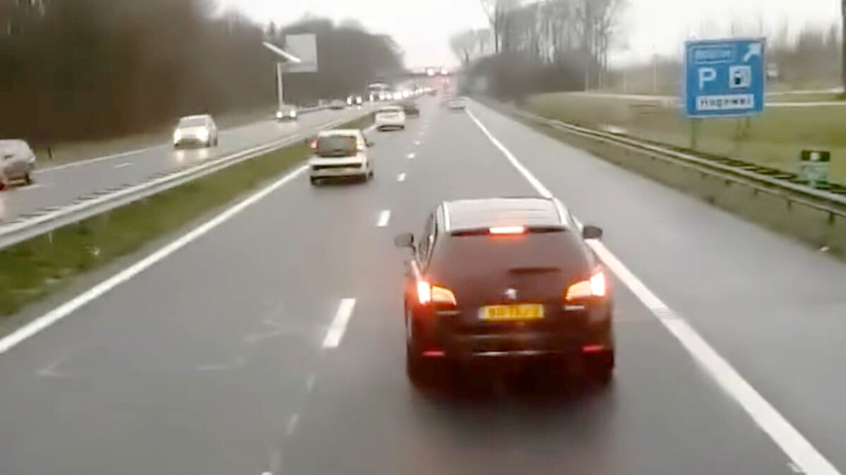 Sommige mensen horen gewoon niet op de weg, punt. Neem deze verkeerstokkie, vermoedelijk uit de oude doos, die blijkbaar z’n levensdoel heeft gemaakt van vrachtwagens dwarsbomen. In plaats van een beetje normaal invoeggedrag te vertonen, gooit hij z’n auto vol in de ankers om een vrachtwagenchauffeurtje te pesten.