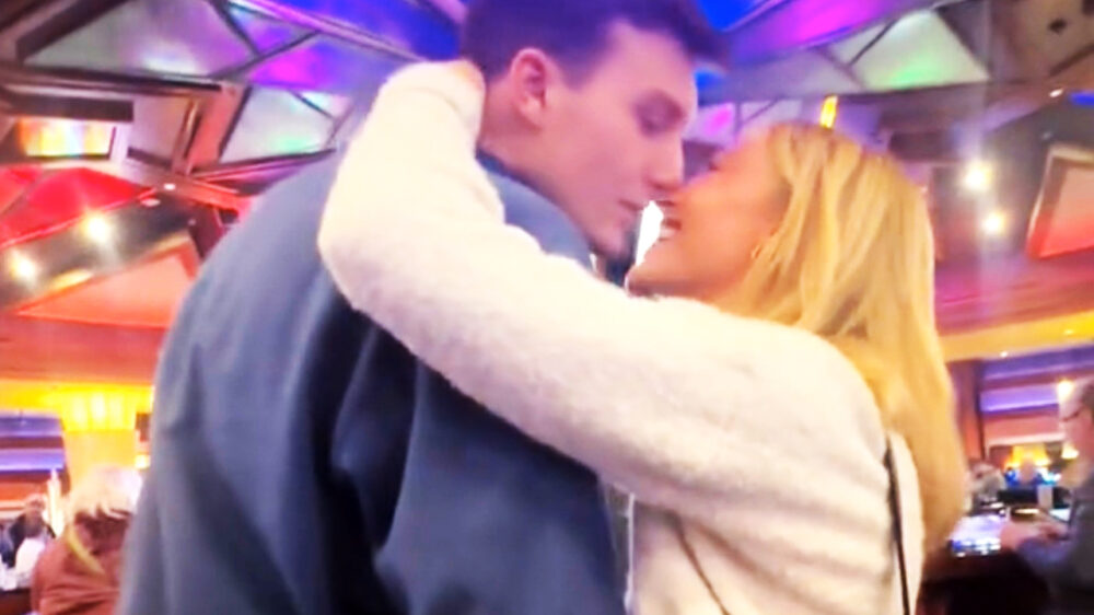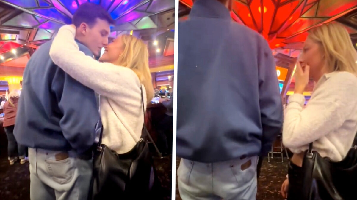 Je staat rustig in de rij, beetje te scrollen, beetje te gapen, beetje te wachten tot het leven weer begint. Maar voor één stelletje in deze video begon het feest al iets eerder dan gepland.