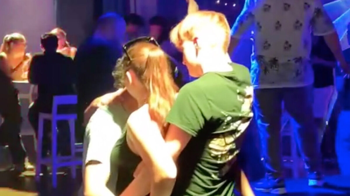 In een inmiddels virale video is te zien hoe het duo op de dansvloer één meisje ‘deelt’ alsof het de laatste bitterbal op een verjaardagsfeest is. De één pakt de voorkant, de ander de achterkant en zij lijkt er niet bepaald bezwaar tegen te hebben. Maar het wordt pas écht gezellig als blijkt dat de jongen achter haar per ongeluk, of misschien stiekem ook niet zo per heel ongeluk, tegen de hand van zijn maat begint te rijden in plaats van tegen haar. 🫣
