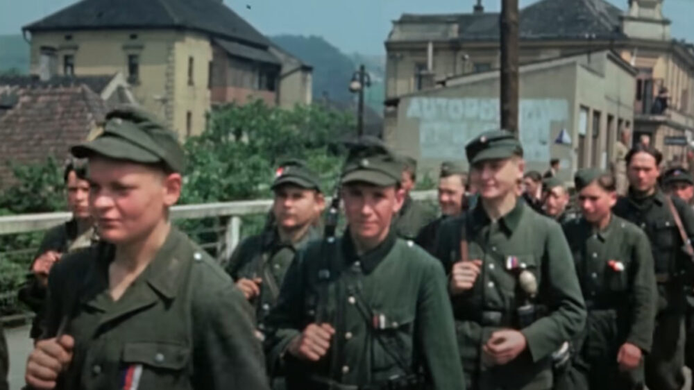 In Duitsland daarentegen is het huilen met de pet op. In Augsburg filmt een Amerikaans team het "Special Film Project 186" de gevallen grootheidswaanzin. Ook Hermann Göring, ooit de rechterhand van Hitler, is van de partij. Begin juli mogen de cameraploegen ook Berlijn in, waar ze zeldzame kleurenbeelden maken van een stad die compleet aan gort ligt. Het levert indrukwekkende beelden op.