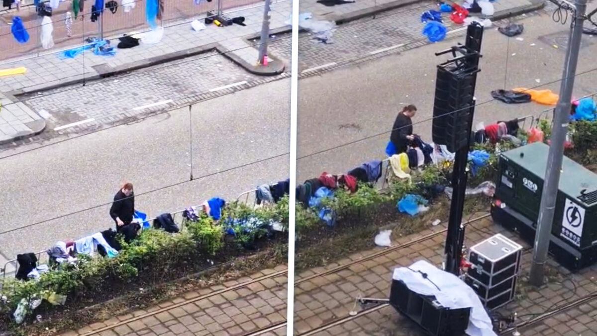 Je hoeft niet eens mee te rennen om na de marathon in Rotterdam met een nieuwe outfit naar huis te gaan. Terwijl de echte helden zich uit de naad lopen voor een medaille en een banaan, loopt er iemand héél relaxed tussen de (tijdelijk?) achtergelaten kleding te shoppen alsof het de uitverkoop bij de H&M is.