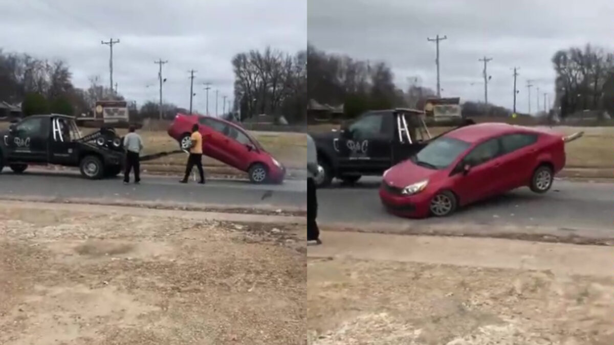 Het zou een simpel klusje moeten zijn voor de chauffeur van de takelwagen: even een auto wegslepen. Helaas voor hem liep dat even anders toen de eigenaar van de auto besloot liever zijn auto aan plodden te rijden in plaats van deze weg te laten slepen.