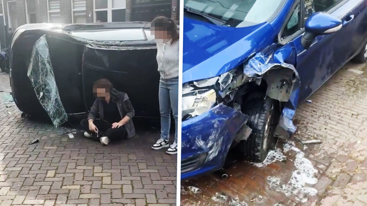 Beelden van ongeluk in Vlaardingen waarbij iemand z'n Volkswagen UP zijn zijkant parkeert