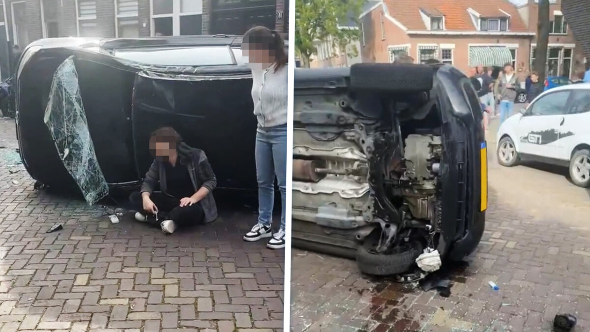 Beelden van ongeluk in Vlaardingen waarbij iemand z'n Volkswagen UP zijn zijkant parkeert