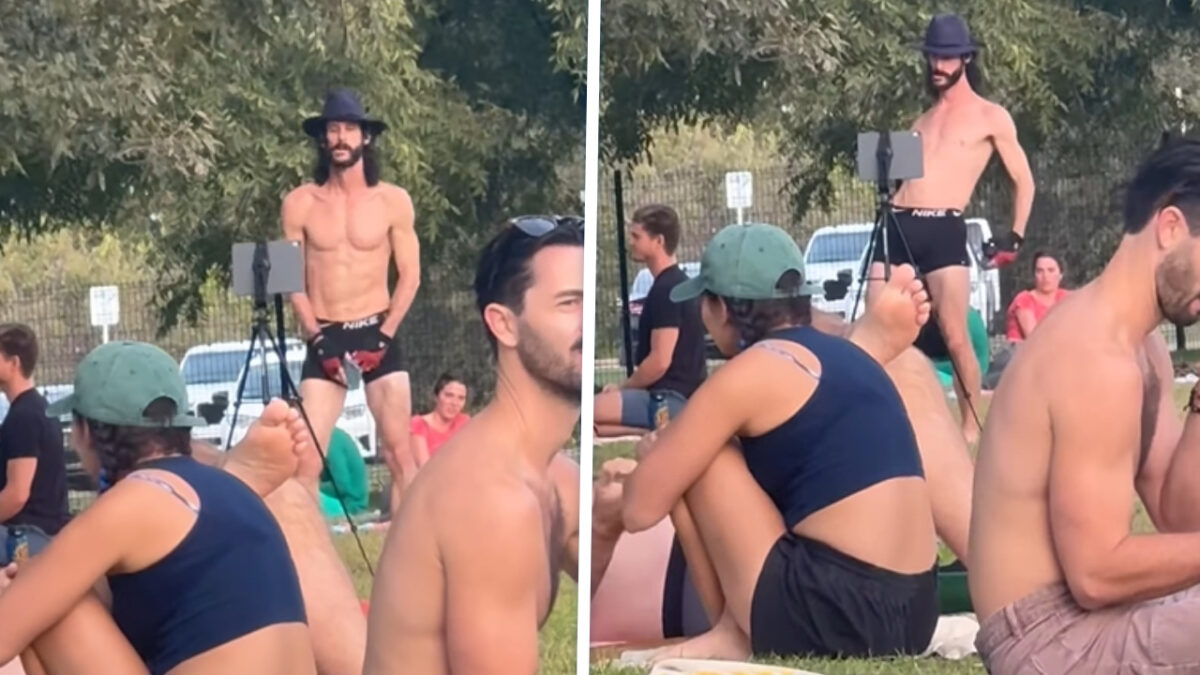 Vleesgeworden bezemsteel schiet content middenin park in een zoektocht naar 'n Grindr-match