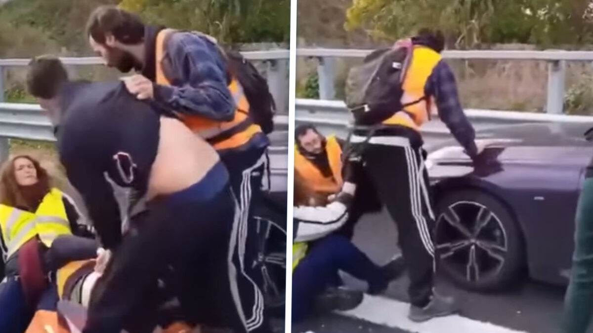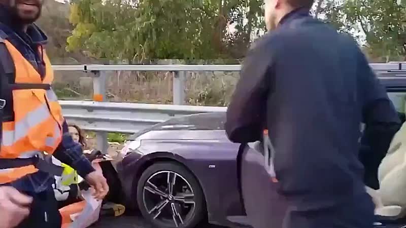 De man zou onderweg zijn geweest naar het ziekenhuis toen hij op een groep eco-activisten stuitte die met een sit-in het verkeer volledig lamlegden. In de video is te zien hoe hij na een korte confrontatie zijn auto door de menigte heen manoeuvreert, waarbij meerdere demonstranten opzij springen of vallen. Niemand raakte ernstig gewond.