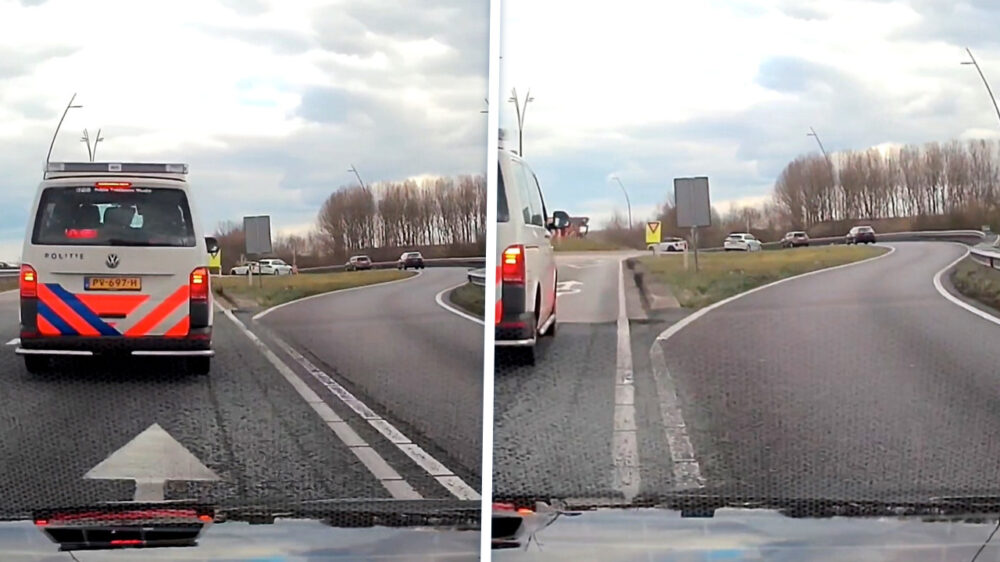 Z'n video is inmiddels meer dan 2.6 miljoen keer bekeken, maar iedereen die een beetje verder kijkt dan z'n eigen neus lang is én een beetje verstand in z'n hersenpan heeft, ziet natuurlijk meteen dat beide auto's gewoon weer op dezelfde baan uitkomen.