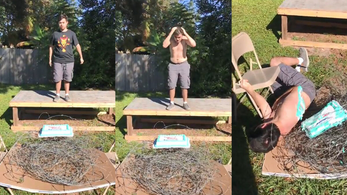 Amateurworstelaar viert zijn verjaardag door in het prikkeldraad te springen Bizar