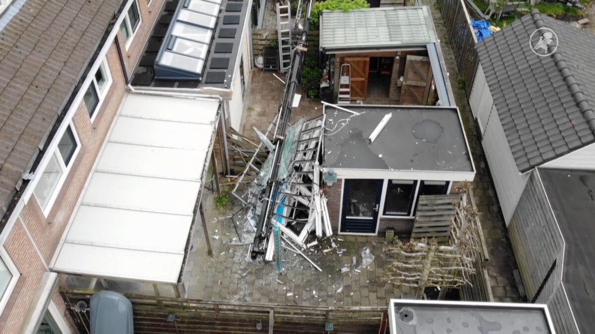 Een kraan die even een paar kozijntjes wilde droppen in een achtertuin in Avenhorn, besloot maandagochtend rond half negen dat 'ie daar geen zin meer in had.
