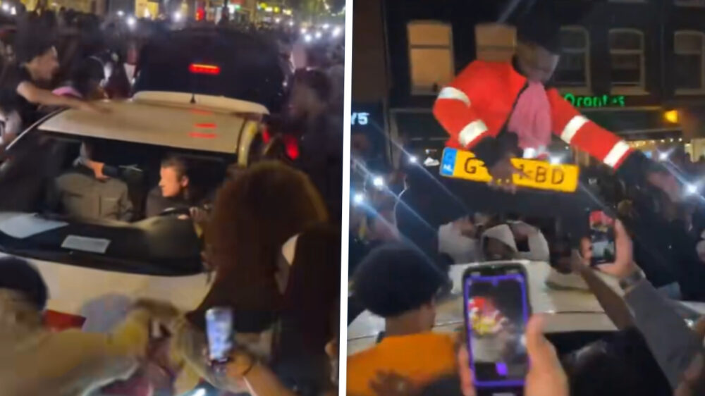 Beelden van de chaos verspreiden zich snel op sociale media, waarbij één incident de meeste aandacht trekt. Hierin is te zien hoe een gemeentewagen van Amsterdam wordt omsingeld en zelfs besprongen door tientallen feestvierders.