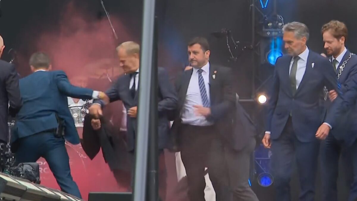 In Wageningen ging het vanmiddag mis toen er een rookbom richting premier Dick Schoof en de Poolse premier Tusk werd gegooid. De bom kwam tijdens Schoof's speech op het podium terecht. Beelden laten zien dat Tusk naast Schoof lijkt te worden geraakt.