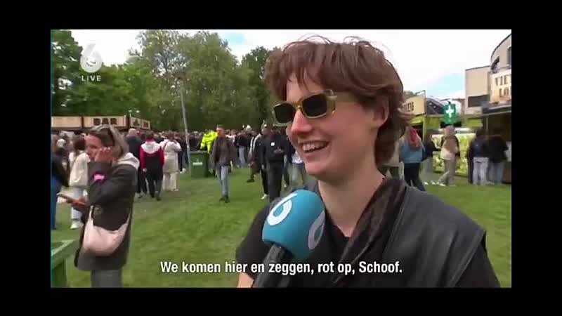 De eerste de beste meid die ze een microfoon onder de neus duwde, steunt de demonstranten vol overtuiging: “S*ck my d*ck, Schoof!” Volgens de dame, die zelf geen Nederlands spreekt, heeft Schoof totaal geen plek in Nederland.