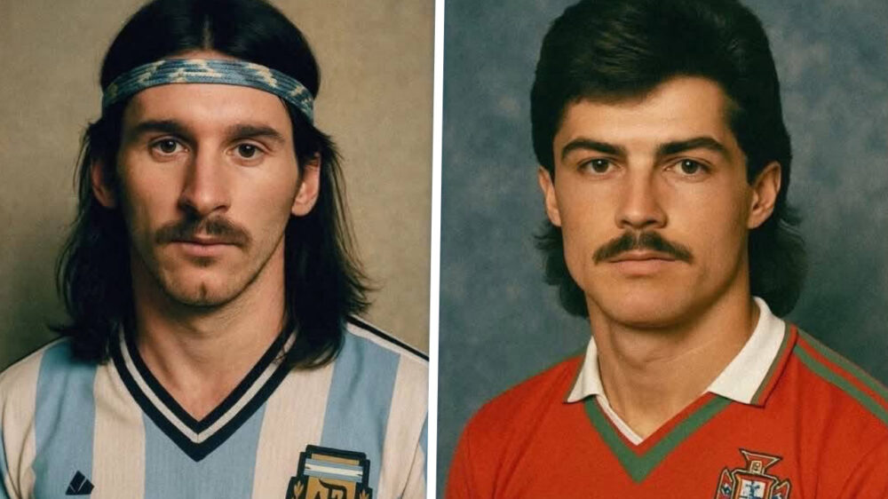 Voetbalsterren uit 2025 dankzij AI terug naar de jaren 80; compleet met matje en snor