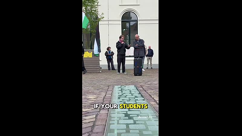 Hij ging daarom in discussie met de voorzitter van de Universiteit Utrecht, Anton Pijpers, betreffende het "disproportionele geweld van de politie tegen studenten die protesteerden tegen Israël’s genocide". Als Anton zegt dat hij oprecht om zijn studenten geeft, wordt dat beantwoord door de menigte met een lachsalvo: