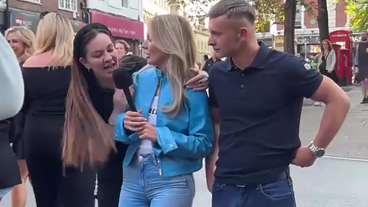 Blijkbaar is niet iedereen onder de indruk van Bonnie Blue’s carrière als wandelende stand-in voor de Kamasutra. Terwijl ze weer eens een random gast staat te interviewen alsof ze hem straks óók achter de camera een dienst gaat bewijzen, komt er een vrouw langs die er duidelijk klaar mee is. “How is it being a sl*t?”.