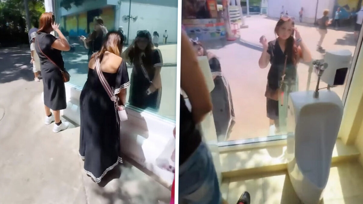 Mannentoilet Bangkok heeft doorschijnende spiegels om urineren 'leuker' te maken