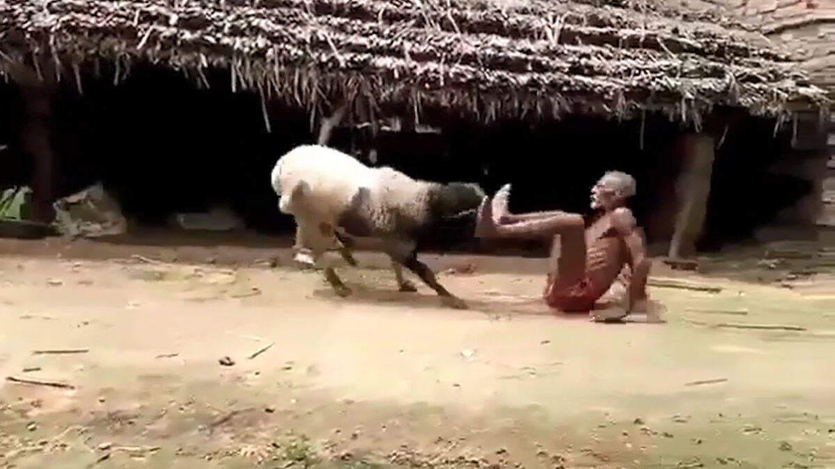 Ouwe gek besluit een potje te matten met pislinke ram Bizar