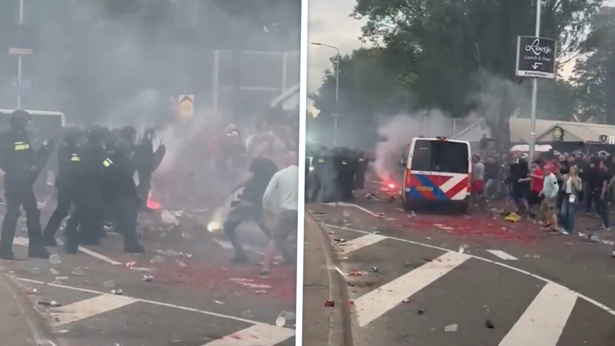 Hondsdolle supporters gooiden flessen en vuurwerk naar de politie