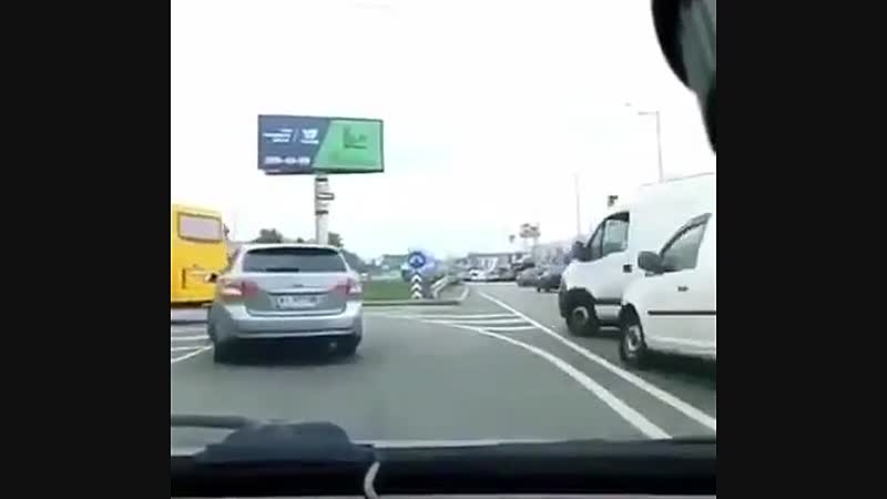 Twee automobilisten in een klusbus besluiten om op het allerlaatste moment af te slaan