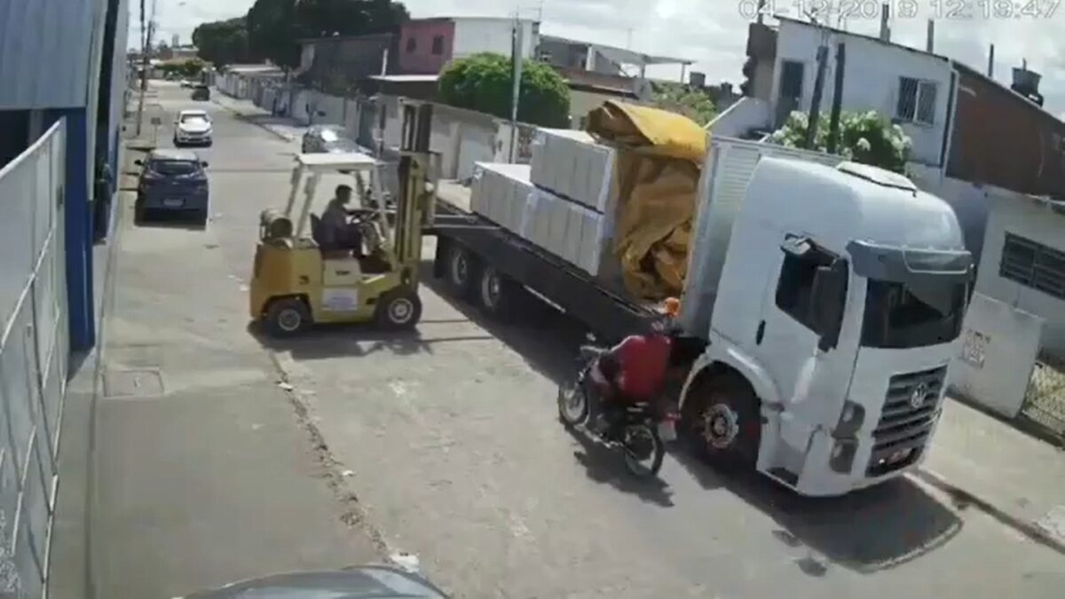 Brommerrijder heeft zijn hoofd er niet helemaal bij als hij een vrachtwagen passeert Verkeer