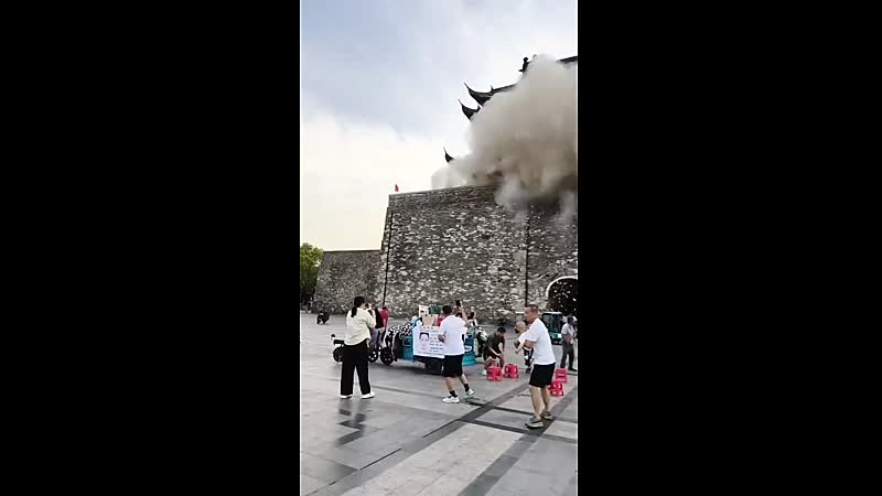 Toeristen rennen voor hun leven als eeuwenoude Fengyang Drum Tower ineens instort