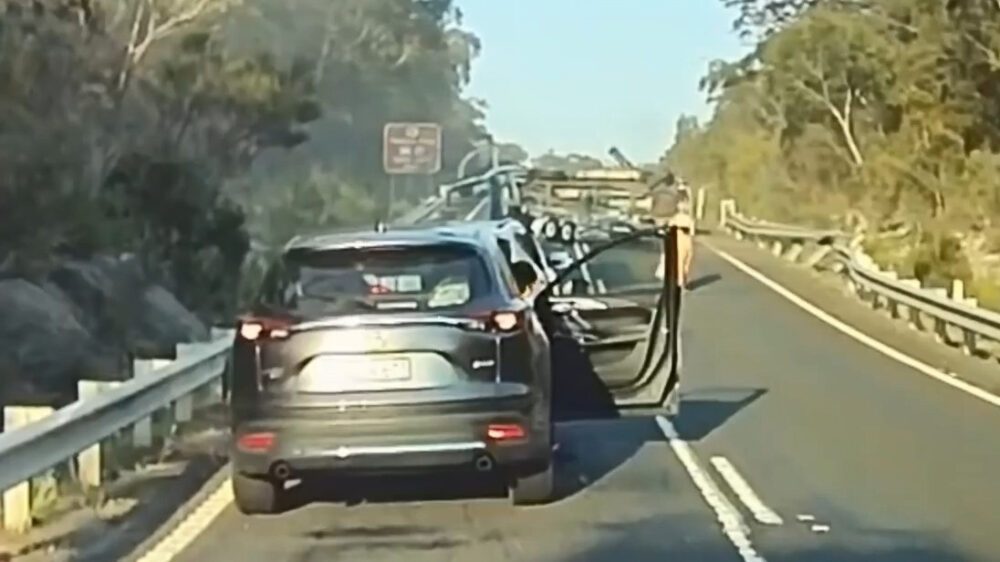 Ongeduldige Aussie met een boot slingert de vangrail in na idiote inhaalactie