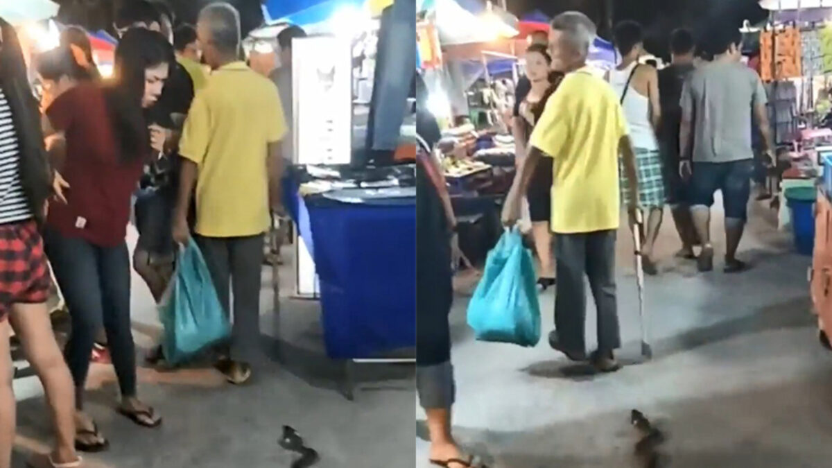 bejaarde opa schrikken slang prank