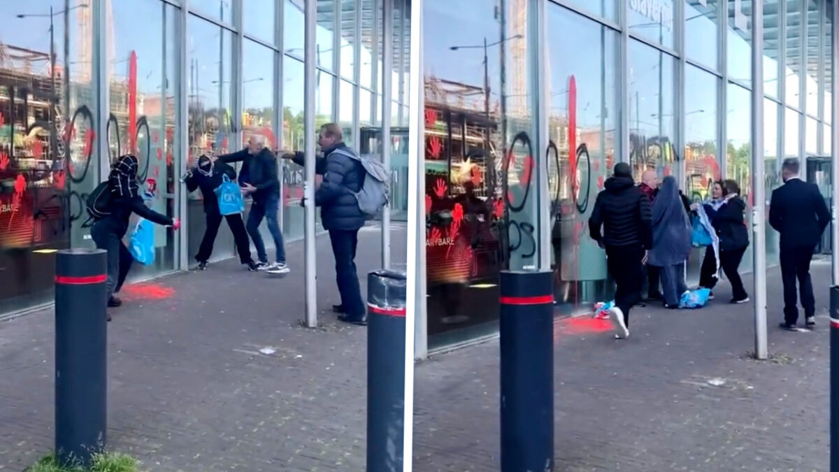 Pro-Palestijnen bekladden Hoftoren Den Haag, omstanders grijpen in