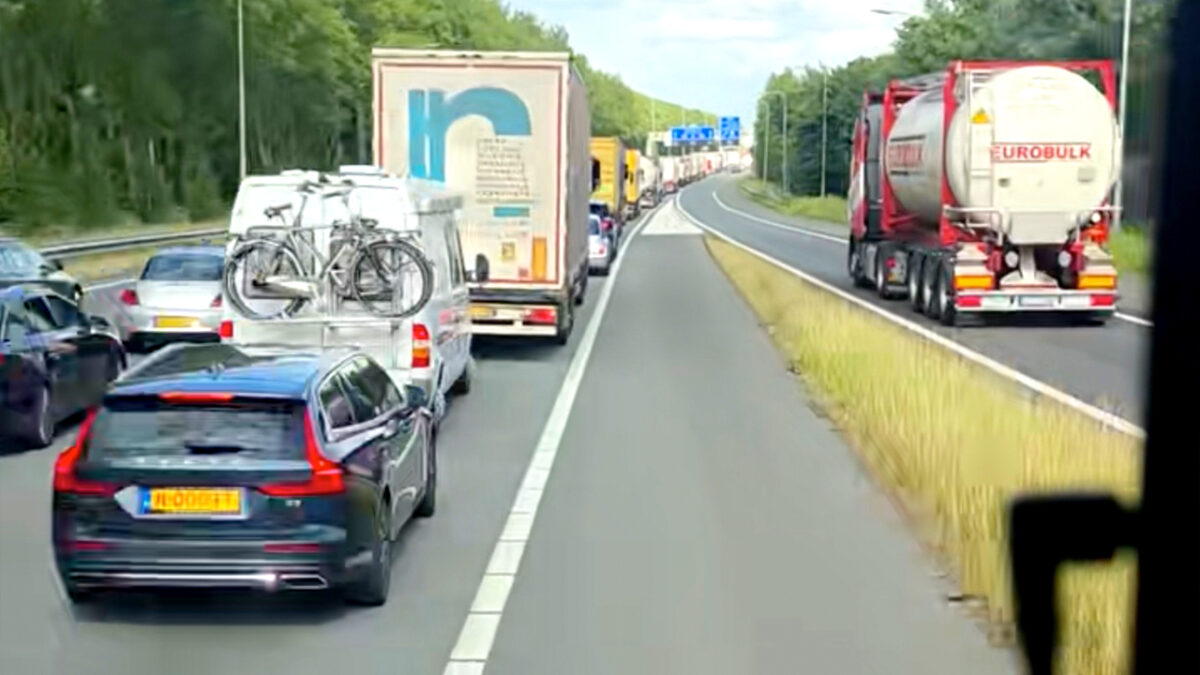 Vrachtwagenchauffeur laat zien hoe je simpel vervelende files omzeilt