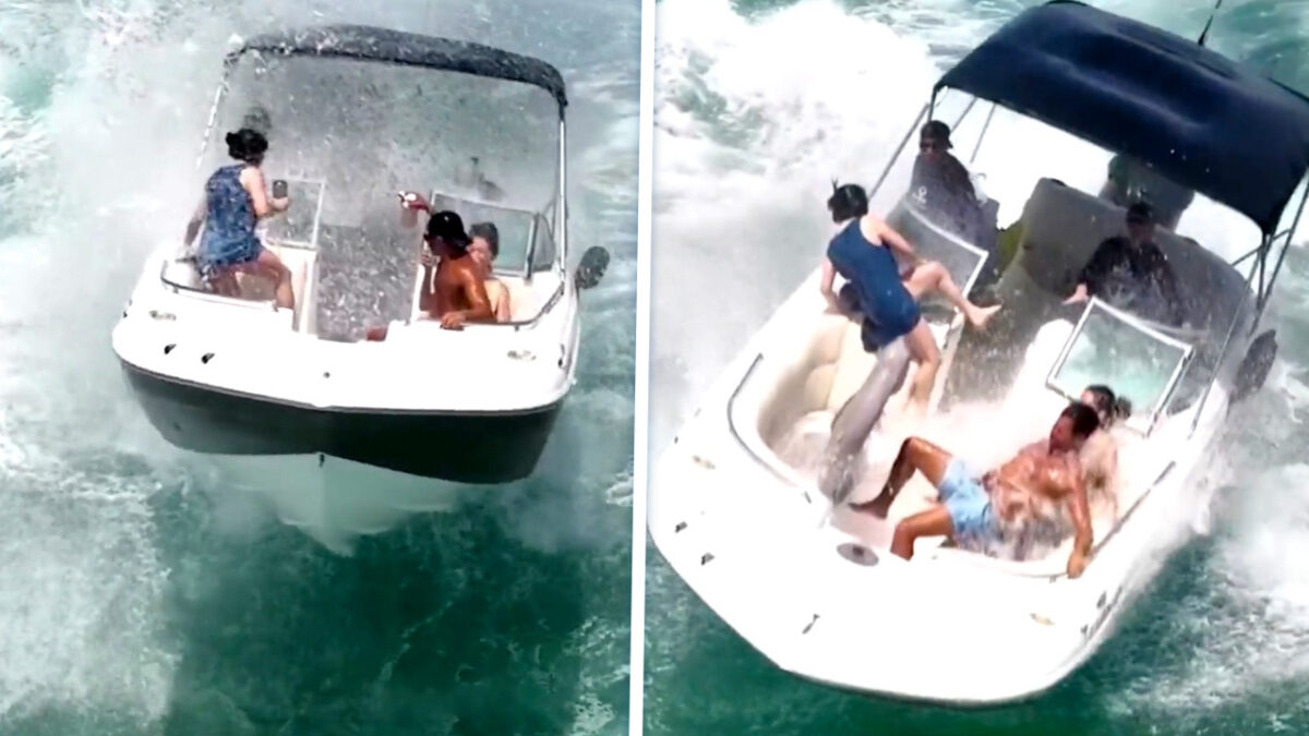Soms denk je: wat kan er nou misgaan op een zonnige dag met een paar vrienden op een boot? Nou, dit dus. Eén flinke golf en deze vakantievierders werden gelanceerd alsof ze een retourtje ruimte hadden geboekt met SpaceX. De drankjes vlogen door de lucht, mensen klapten tegen de vloer en de boot dacht even dat ‘ie een dolfijn was. Kortom: nat, pijnlijk, maar voor ons ook wel een beetje genieten geblazen.