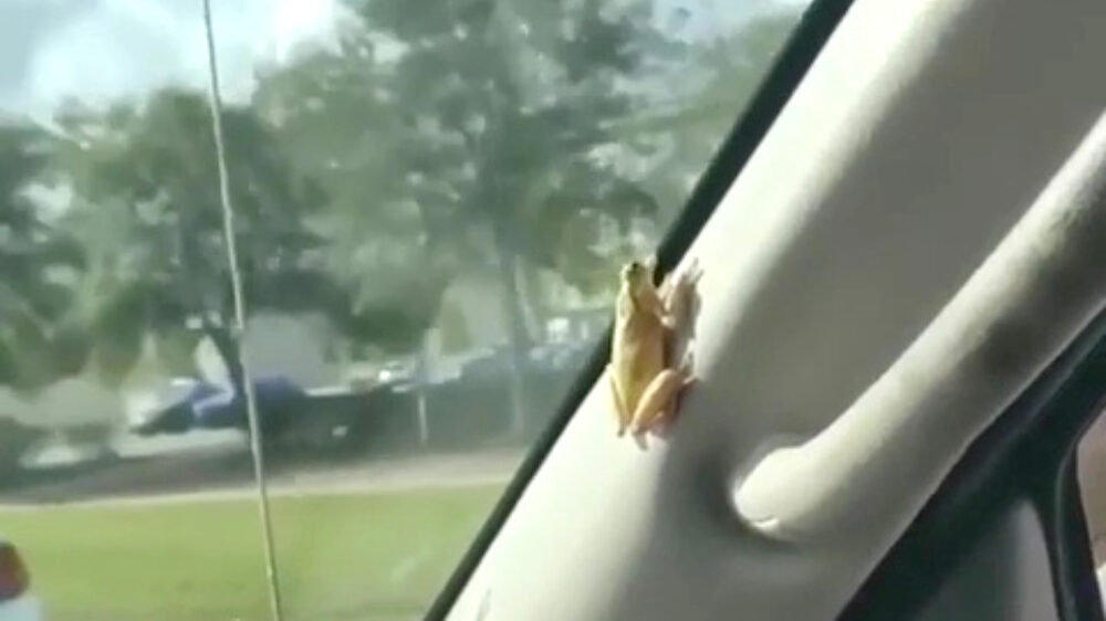 Het lijkt best schattig, zo'n kikker in je auto, maar die beestjes kunnen nog wel eens onverwacht uit de hoek komen.
