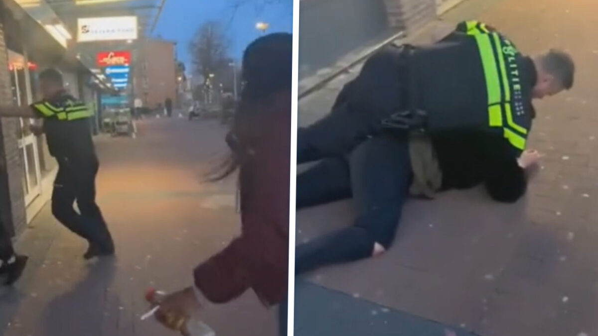 Twee vrouwen krijsen het uit terwijl oom agent hardhandig te werk gaat. Een van de twee wordt op afstand gehouden met een bescheiden vleug pepperspray, de ander zonder genade met haar gezicht tegen het trottoir gedrukt. Omstanders bemoeien zich met het optreden en noemen de agent een ‘flikkertje’, vanwege zijn brute aanpak van de dames.