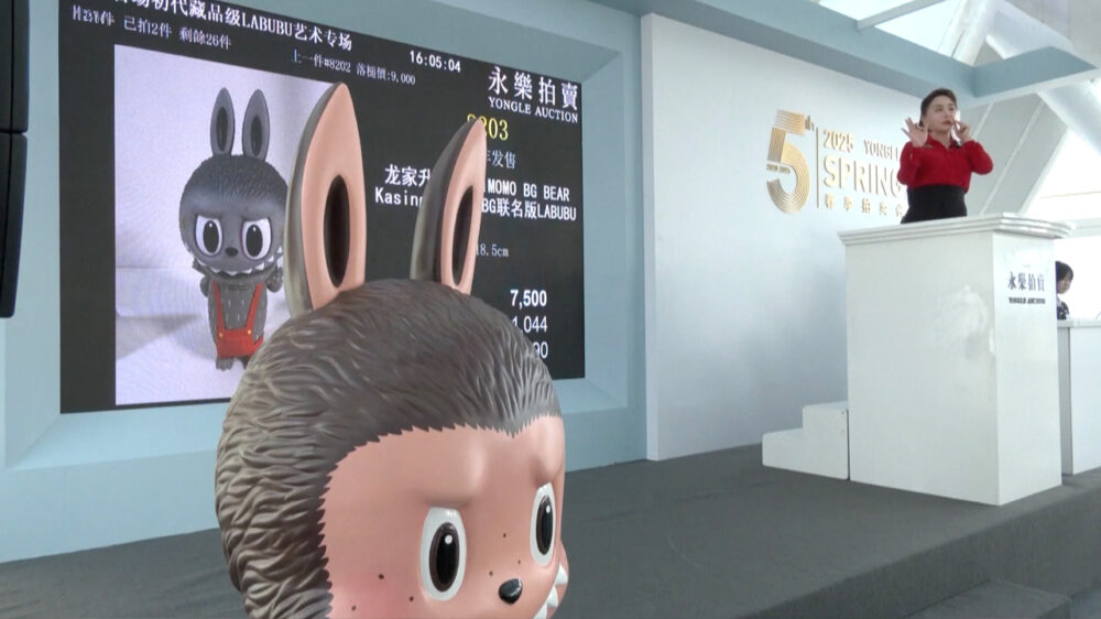 De veiling bevatte in totaal 48 van deze figuren, met een opbrengst van 3,37 miljoen yuan, zo'n 438.000 euro. Ondertussen doet het Chinese Pop Mart goede zaken: vorig jaar verdubbelden ze hun omzet en openden ze winkels in onder meer Italië en Spanje.