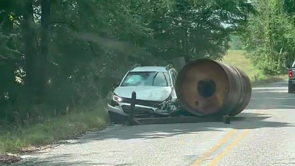 In Alabama zijn ze weer lekker bezig: een losgeslagen wals heeft daar zaterdag een auto compleet tot pannenkoek geperst. Het gevaarte rolde van een truck af alsof het de bedoeling was en parkeerde zichzelf vol op een nietsvermoedende wagen. De voorbumper is inmiddels onderdeel van het asfalt. Wonder boven wonder stapten de inzittenden ongedeerd uit het wrak.