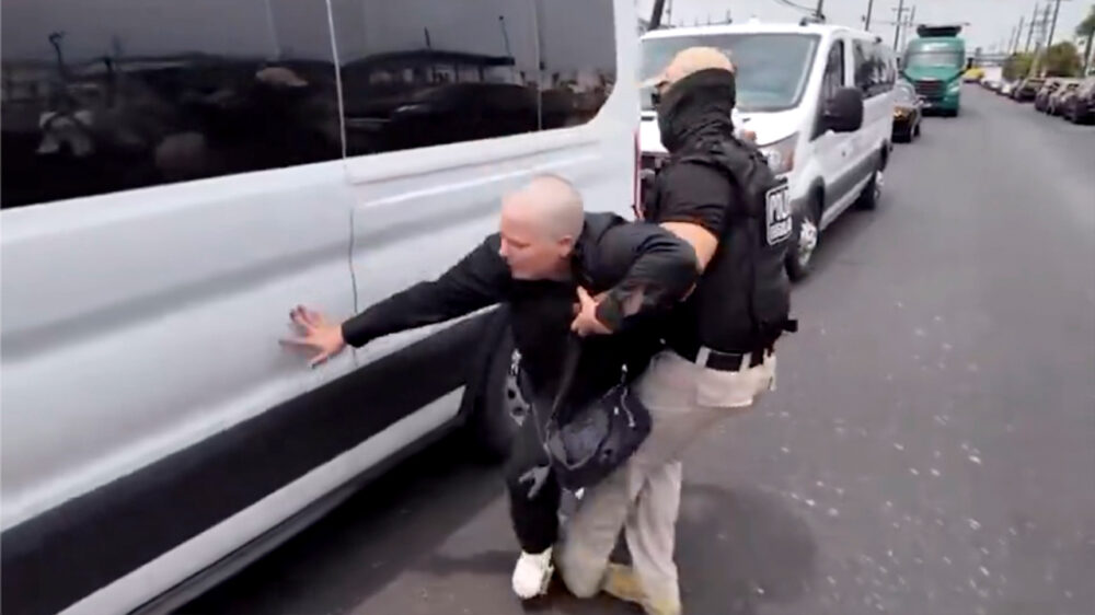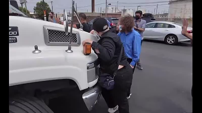 Totaal geflipte anti-ICE activist probeert bus met gedetineerden tegen te houden
