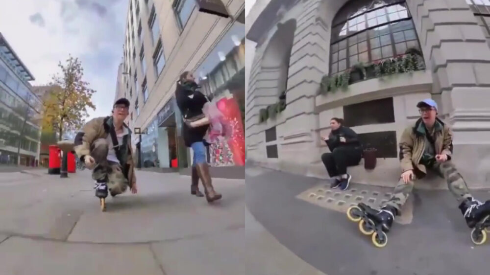 Overmoedige skeeleraar komt onverwachte en pijnlijke hindernis tegen