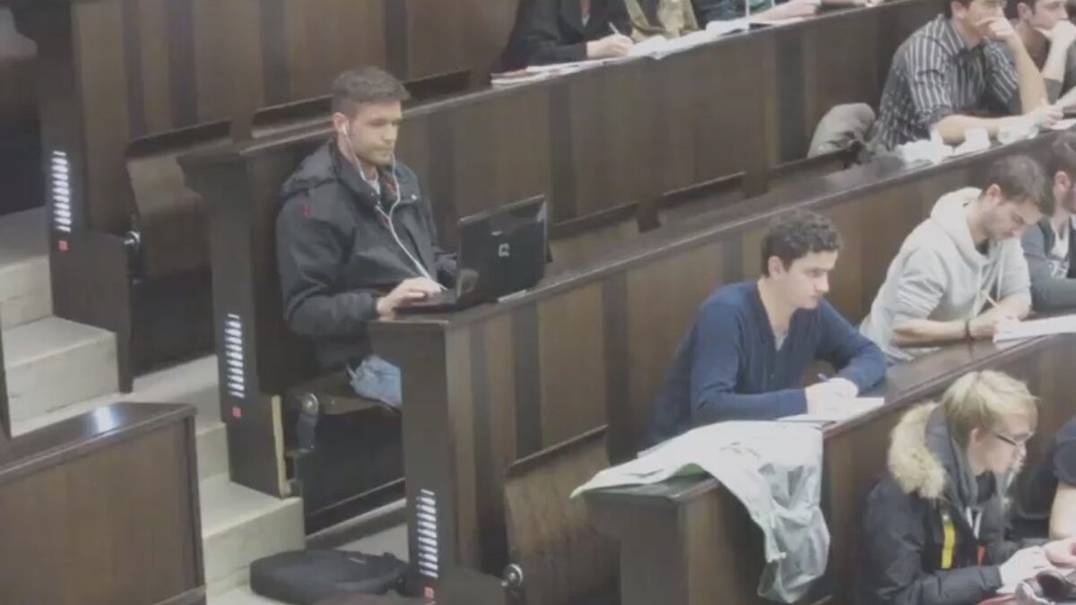 Duitse student kijkt vieze filmpjes in de collegezaal